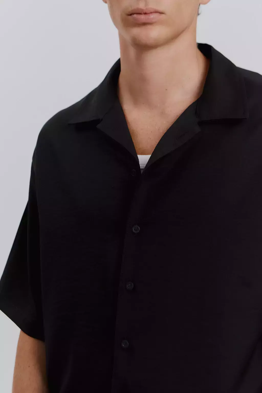 Camisa de calce boxy fit, confeccionada en sarga liviana que aporta frescura y comodidad.